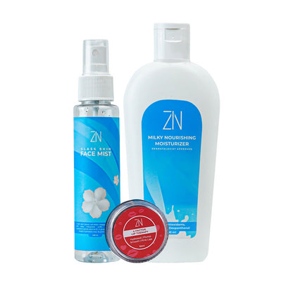 This bundle ensures your skin and lips are perfectly prepped, enhancing the longevity and appearance of your makeup. The Face Mist also supports acne management and stimulates collagen production, while the Milky Moisturizer, enriched with Vitamins B5 and E, brightens and nourishes. The Lip Therapy, made with 100% natural ingredients, guarantees velvety-soft, kissable lips, completing your flawless makeup look. The Face Mist can also be used after makeup application as a makeup fixer to lock in your look and provide a refreshing boost throughout the day.